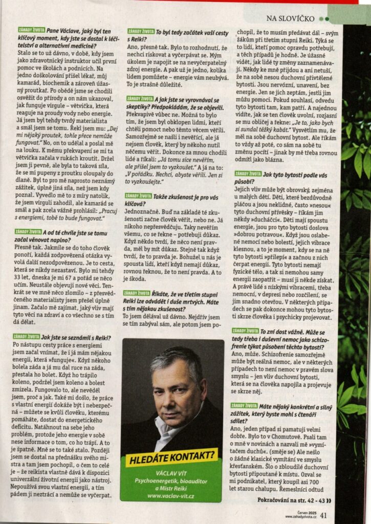 Rozhovor s panem Václavem Vítem v časopisu Záhady života (červen 2025)